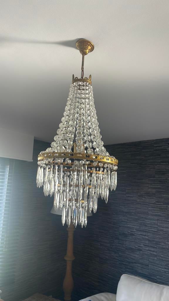8 apr 26GilGent - Kristallen luchter met bijhorende wandlampKristallen luster in heel goede staat met diameter 51 cm en bijhorende wandlamp van 15 cm op 15 cmZo goed als nieuw Ophalen