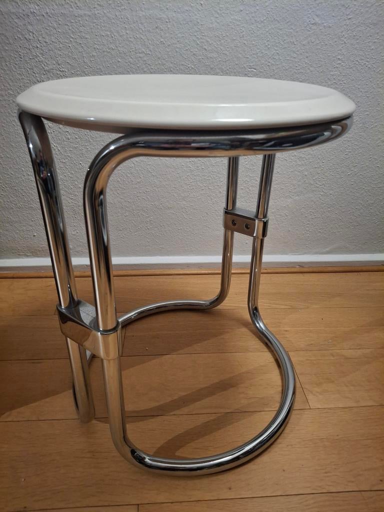 - Keuco krukje - design jaren 70 - Luigi ColaniVintage kruk, met chromen onderstel. Witte zitting van hars. Fabricator dit model is het is in een zeer goede staat van instandhouding en gebruik. Zeldzaam!Ophalen