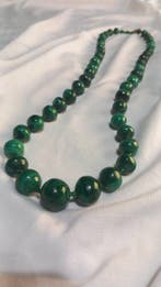 - malachiet Sieraden - Hoogte: 58 cm- 105 g - (1)Malachiet bijou colliere van malachietparels, 58 cm lang, gewicht 105 g, afkomstig uit frankrijk, met schroefsluiting. Ketting van malachietparels.halfedelsteen.prachtige parels met kleuren die variër