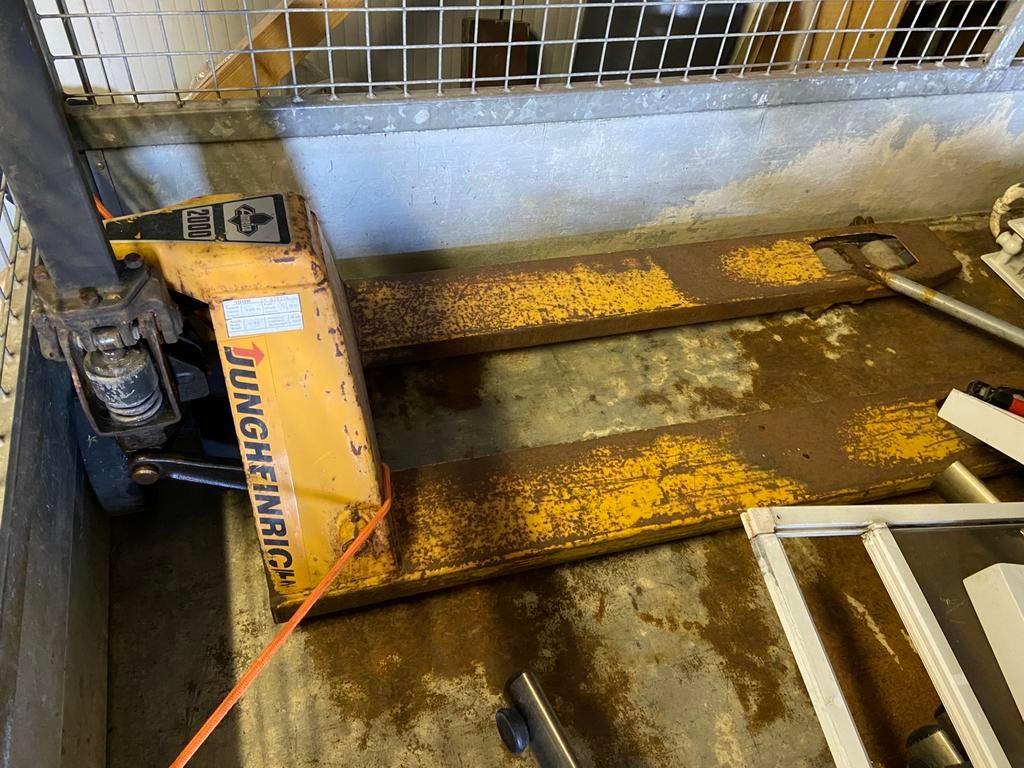 - Palletwagen / transpalletDegelijke manuele palletwagen in werkende staat. Gebruikt, met normale gebruikssporen (zie foto’s). Ideaal voor magazijn, garage of werfgebruik.Gebruikt Ophalen