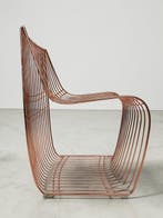 13 okt 25JoHerk-De-Stad - MDF Italia - Piergiorgio Cazzaniga - Chaise - Sign Filo -Chaise sign filo mdf italia par piergiorgio cazzaniga, modèle sign filo, en fil d‘acier galvanisé fini chromé or rose, fabriquée en italie, style contemporain, années 2020, dimensions h77,5 x l50 x p5