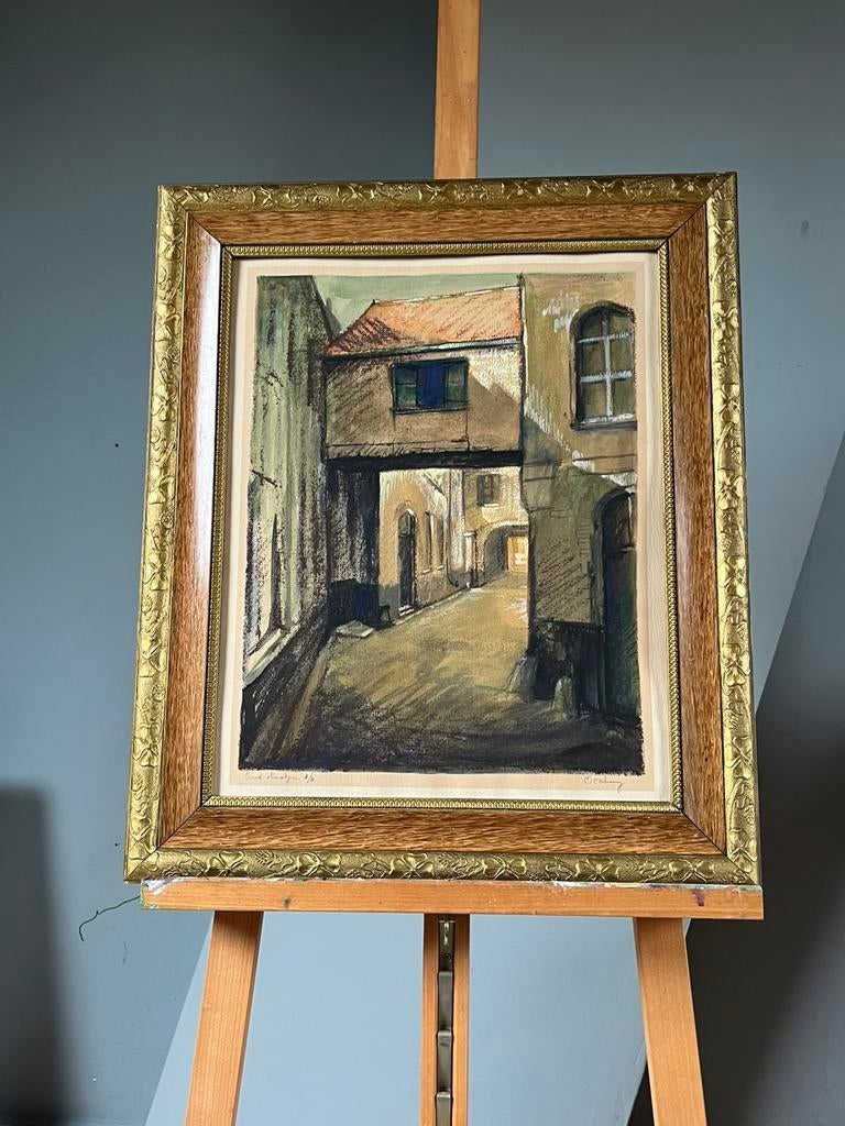 - Oud straatje, kleurenetsMooie kleurenets, getekend mechnig, aantal 3/3… in prachtige retro-kader… afm kader 53/64, werk zelf 40/50. Authentiek antiek werkOphalen