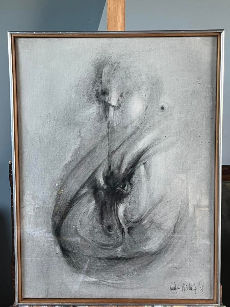 16 mrt 19BrisapamaAalst - Schilderij op doek: Wilhelm MECHNIG (1929-2004), Aalst.Olieverfschilderij op doek mét handtekening van de aalsterse schilder wilhelm mechnig (° keulen, duitsland 1929 - + aalst 2004). Uniek schilderij want uit mechnigs beginperiode ! Later evolueerde hijOphalen of Verzenden