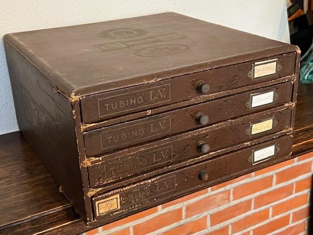 5 apr 26deneumostierRochefort - TUBOR TUBCA fourniturenmeubilairZeldzame tubor tubca houten fourniturenkast met 3 laden. Modieus naaien. Oude houten kist voor knoopdraden. Vintage uit de jaren 50. Afmetingen: lengte 42 cm x diepte 30 cm x hoogte 22 cm sporen van mGebruikt Ophalen