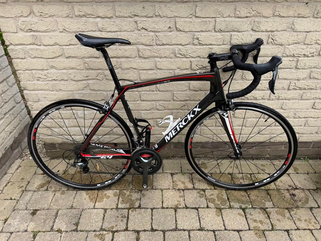 9 aug 25yobberBouwel - racefiets MerckxEddy merckx fiets sallanches 64 - zwart/rood carbon - ketting: shimano 105 spd-pedalen 2 bidonhouders kader: large afmeting : zie foto in zeer goede staat aangekocht in 2017 maar weinig gebruikt wordtGebruikt Ophalen
