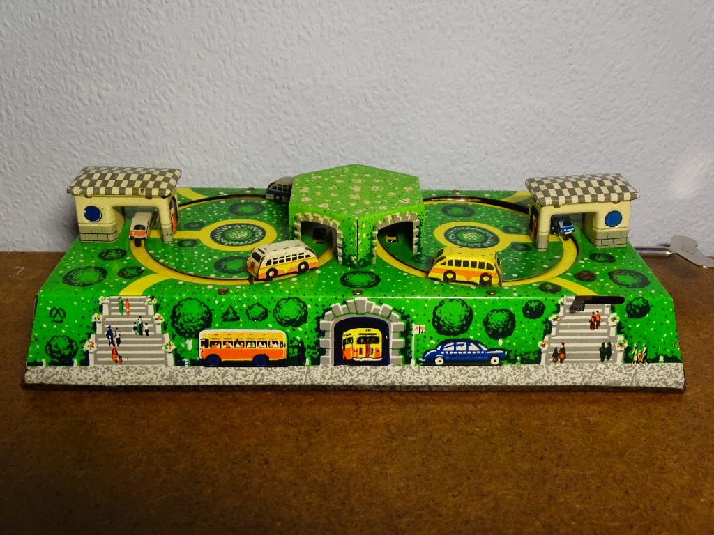 - metalen landschap met autootjes die rondrijdenMetalen landschap van 24 op 12 cm opwinden met sleuteltje de autootjes rijden rond door de tunnelsGebruikt Ophalen of Verzenden