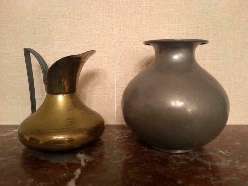 - Ronde tinnen vaas en koperen kan van Metawa HollandTwee objecten van metawa, de metaalwarenfabriek uit tiel (nederland), gesticht in 1923 en gesloten in 1973. Metad'or was de handelsnaam voor koper maar werd ook gemaakt van pewterware. Het kannetjGebruikt Ophalen of Verzenden