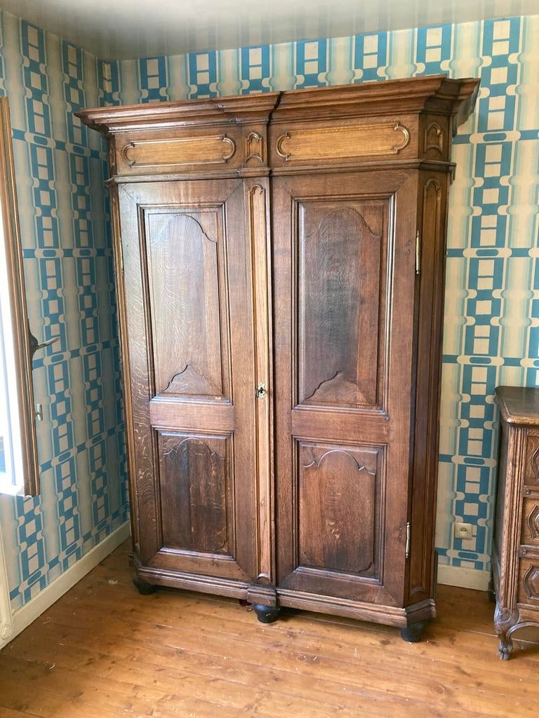 26 mrt 26MPBerloz - Grande garde-robe en chêne début 18e s.Grande et prestigieuse armoire en chêne datée de 1715-1730. Ce meuble est possiblement né dans la région de liège. Son style est influencé du classicisme français même si les sculptures présentent desOphalen