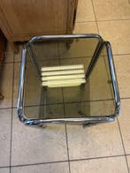 - Table dappoint - Chrome - Années 70 (vintage)Meuble vintage en chrome des années 70 avec deux plateaux en verre fumé, en bon état avec quelques usures dues à l’âge.