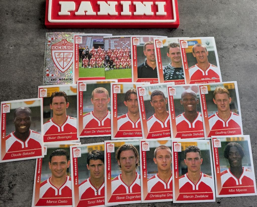 19 nov 25SpecialTAntwerpen - PANINI STICKERS 20X FOOTBALL 2000 EX.MOESKROENPanini voetbal stickers plaatjes prenten: team : excelsior mouscron 20x stickers football 2000 anno 1999 volledige set inclusief team en stadion foto + zeldzaam emblem/badge enz niet vragen at ik ervoNieuw Verzenden
