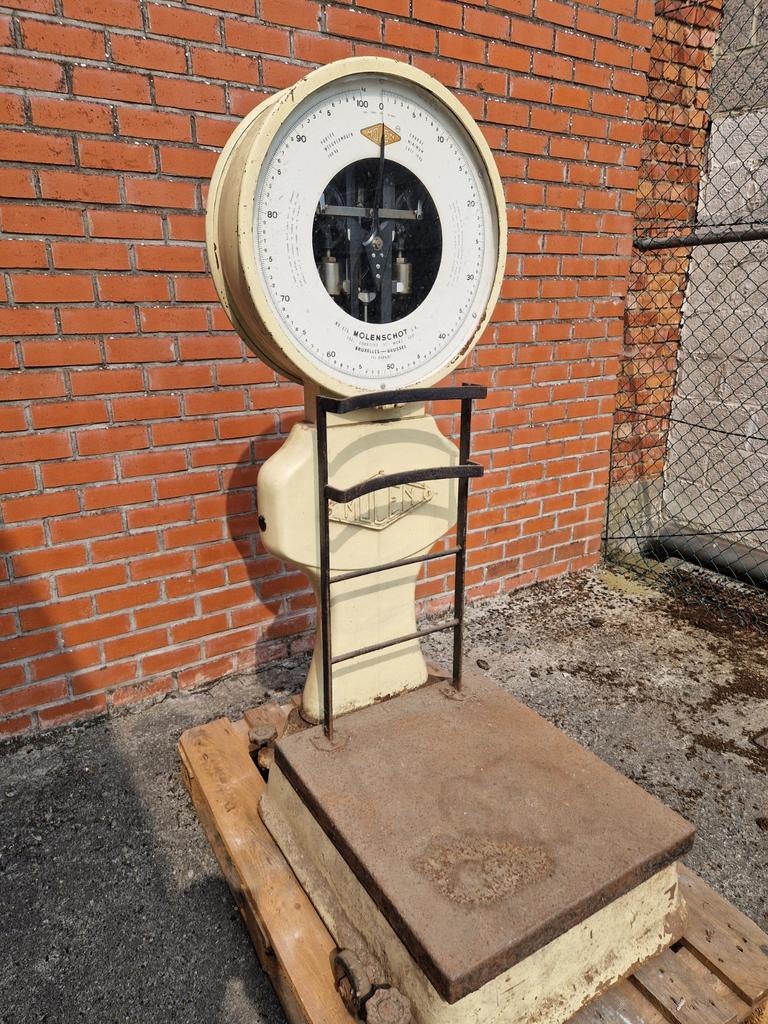 3 apr 26itsmeDenderleeuw - weegschaal molenslotWeegschaal bascule molenschot brussel jaar 1955 tot 105 kg 199 euro; ophalen in koksijdeGebruikt Ophalen