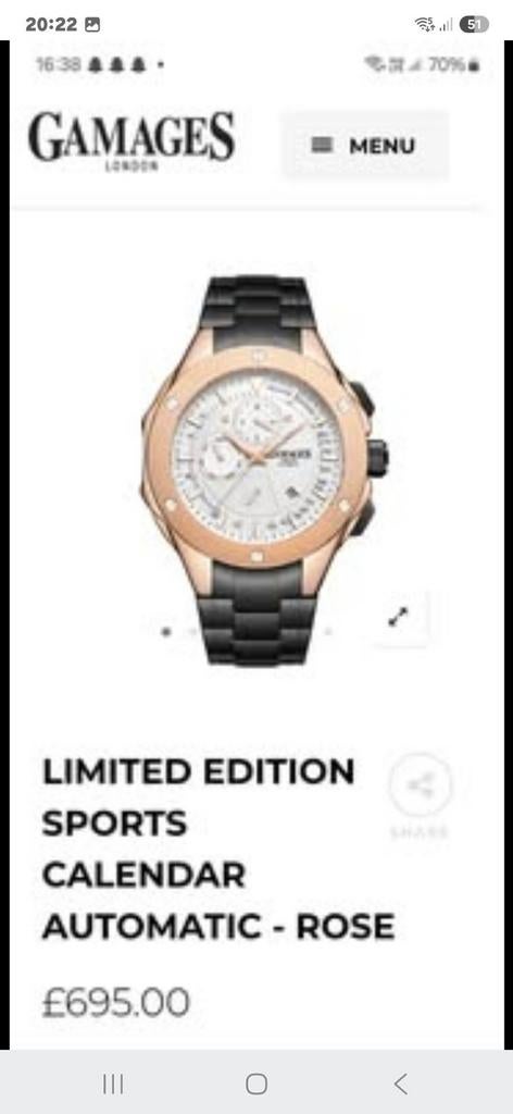 - Gamages SPORTS SHARE AUTOMATIC ROSENeuf irréprochableZo goed als nieuw Ophalen