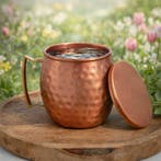 - Puur koperen Moscow Mule beker gehamerd, met losse deksel ±Deze bijzondere handgemaakte moscow mule beker plus deksel is gemaakt van puur koper. Ayurveda bepleit al sinds de oudheid de voordelen van het drinken van water uit koperen drinkgerei. Ayurveda steltNieuw Ophalen of Verzenden