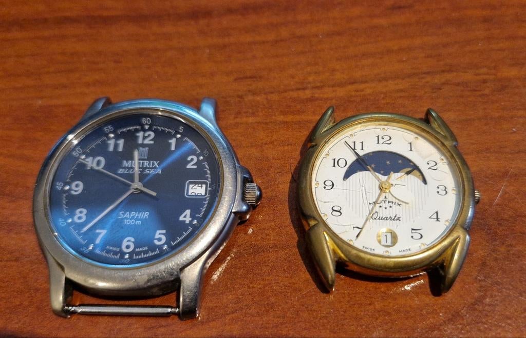 - 2 horloges MutrixMutrix quartz. Wijzerplaat beschadigd. Mutrix blue sea saphir 100m. Beide werken nog, met een nieuwe batterij. Ik verzend naar nl aan tarief postnl.nl.Zo goed als nieuw Ophalen of Verzenden