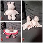 Een nattou doudou is een zachte knuffel of doek die vaak wordt gebruikt door baby's en jonge kinderen. Het biedt een gevoel van veiligheid en comfort, en kan helpen bij het inslapen of troost bieden tijdens spannende momenten. De meeste doudous hebben een vierkante of rechthoekige vorm met een ingerimpeld deel dat lijkt op een hoofd, waardoor het gemakkelijk vast te pakken is voor kleine handjes.