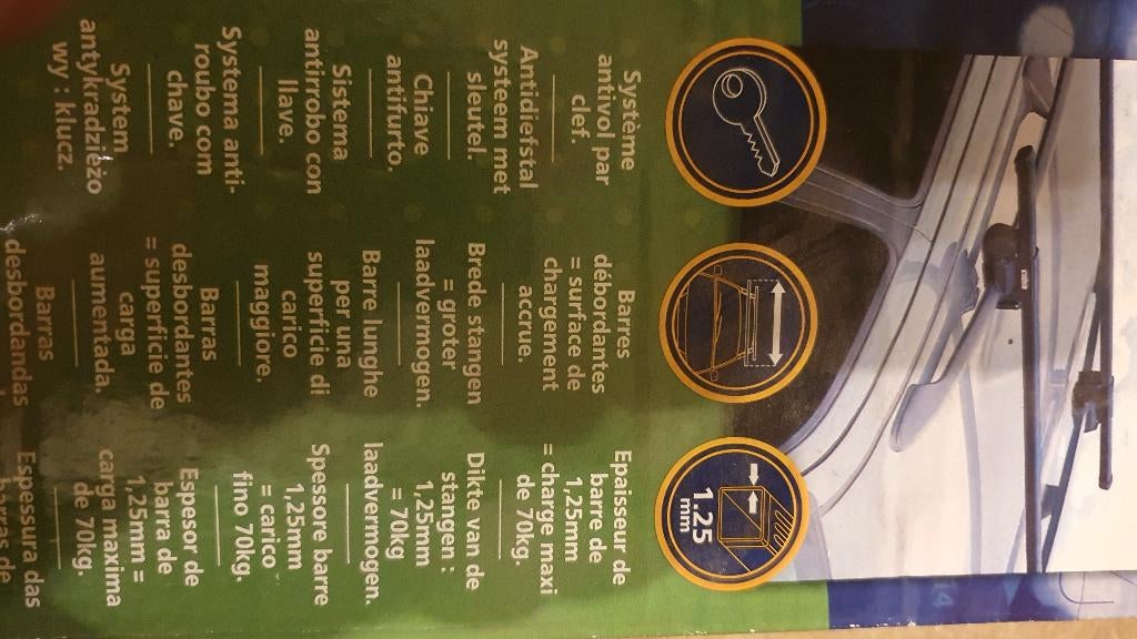 29 okt 25PhilRonse - NORAUTO dakdragersNorauto autodakdragers, ze zijn nieuw en nooit gebruikt (de doos is nog steeds verzegeld). Voor gebruik op alle auto's met langsbalken. De maximale belasting van deze staven is 70 kg. Een belangriNieuw Ophalen