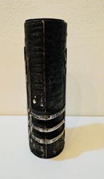 6 apr 26CatawikiHeel België - Polaris - Olaf Joff - Vase - Acier - Vase brutalité OlffVase polaris conçue par olaf joff dans un design brutaliste, en acier inoxydable provenant de norvège, couleur argent, 6 cm de diamètre, 21 cm de hauteur et 6 cm de profondeur, période 1960–1970, en b