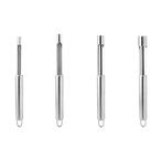 Een ontpitter is een handig keukengerecht dat speciaal is ontworpen om de pitten uit fruit zoals kersen, pruimen en olijven te verwijderen. Het gebruik van een ontpitter is eenvoudig; je plaatst het fruit in de houder, drukt op de hendel of draait aan de knop, en de pit wordt er met gemak uit geduwd. Dit bespaart je tijd en moeite in de keuken, vooral als je vaak met dit soort fruit werkt.