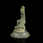 - Oud-Romeins Brons Beeldje dat de god Atlas uitbeeldt. - 69Bronzen beeldje dat waarschijnlijk de god atlas voorstelt, knielend op een ronde voet, armen naar de hemel, dateert uit de 1e eeuw na christus, superbe staat met lichtgroene patina, provenance belgisc