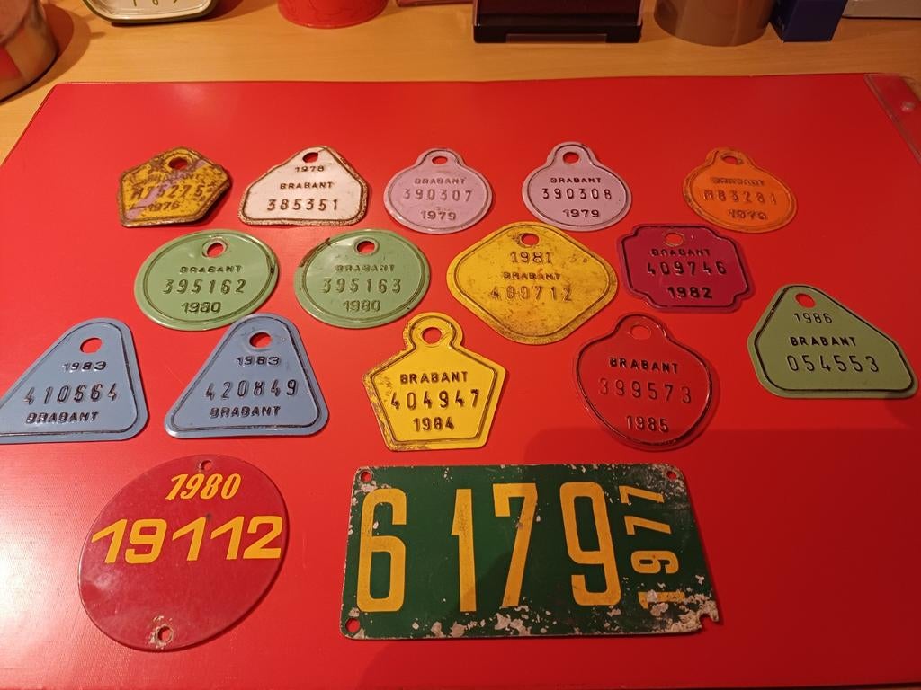 21 jun 25ReineWasseige - Oude taksplaten / fietsplaten 1977 - 1985Taksplaten / taxplaten / fietsplaten / fietsplaatjes / fietsbelasting antwerpen e.a.Ophalen of Verzenden