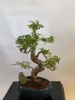 - Chinese iep bonsai (Ulmus parviflora) - Hoogte (boom): 33 cmChinese iep-bonsai (ulmus parviflora), circa 20 jaar oud en altijdgroen, in een blauwe pot met steen, boomhoogte 33 cm met een 4 cm stam, 15 cm diepte, pot 17 cm hoog, 19 cm breed en 12 cm diep, oorsp