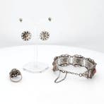 - Sans prix de réserve - Ensemble de bijoux 3 pièces Argent -Une parure en argent composée de deux paires de boucles d’oreilles, d’un bracelet et d’une bague, avec des motifs torsadés ajourés et des pierres simulées en sertissages ouverts et fermés, poids total