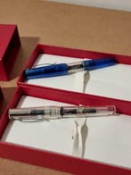 - Coppia di penne stilografiche Stipula - VulpenEen set stipula vulpennen. Beiden pennen hebben de gebruiksaanwijzing, terwijl de blauwe uitvoering, vergeleken met de transparante, ook een extra kartonnen omslag heeft waarop het etiket van de fabriNieuw