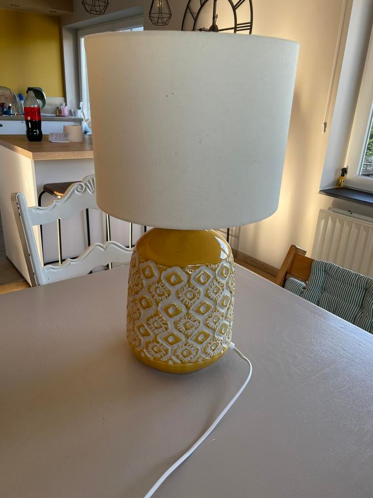 - Lampe maison du mondeLampe jaune moutarde ; petit défaut à l’abat jour et socle de lampe mais tt à fait utilisable .54 Cm en toutZo goed als nieuw Ophalen