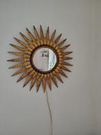 14 mrt 22kevDe Panne - Applique murale - Métal, Plaqué orMiroir mural soleil doré avec deux douilles e27, fabriqué en espagne entre 1950 et 1970, en excellent état avec une légère patine et fonctionnel.