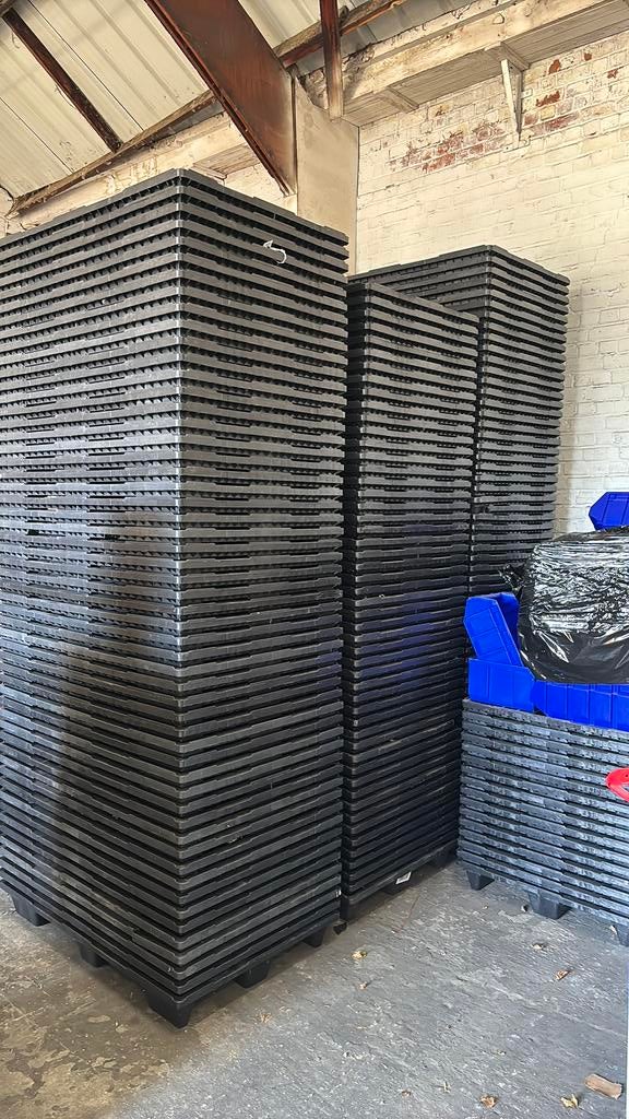 27 mrt 26KatjaBredene - Kunststof plastiek paletten 100x120cm stevige pvc palletsStevige kunststof pallets 1x maal gebruikt 100x120cm per stuk 9.5 Euro goed te gebruiken voor bijvoorbeeld infiltratiesysteem als u ze ingraaft. Pallets kunnen minimaal 1000kg dragen grote aantallen vNieuw Ophalen