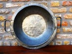 VandaaggalhoSoumagne - Art Nouveau fruitschaal - Orivit.Zeldzame art nouveau fruitschaal. Tin met origneel geslepen glas. Duitsland begin 1900. Hoogte 27 cm diameter 29 cm 2 kg verguldsel deels afgesleten door gewoon gebruik. Twee minibarstjes in het metaaOphalen of Verzenden