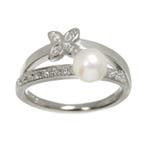 - Mikimoto - Bague PlatineAlliance mikimoto en platine avec perle akoya de 5,5 mm et diamant, taille us 4,75–5, poids 6,6 g, gravure pt950, pour femme, en très bon état, sans rapport de laboratoire.Nieuw