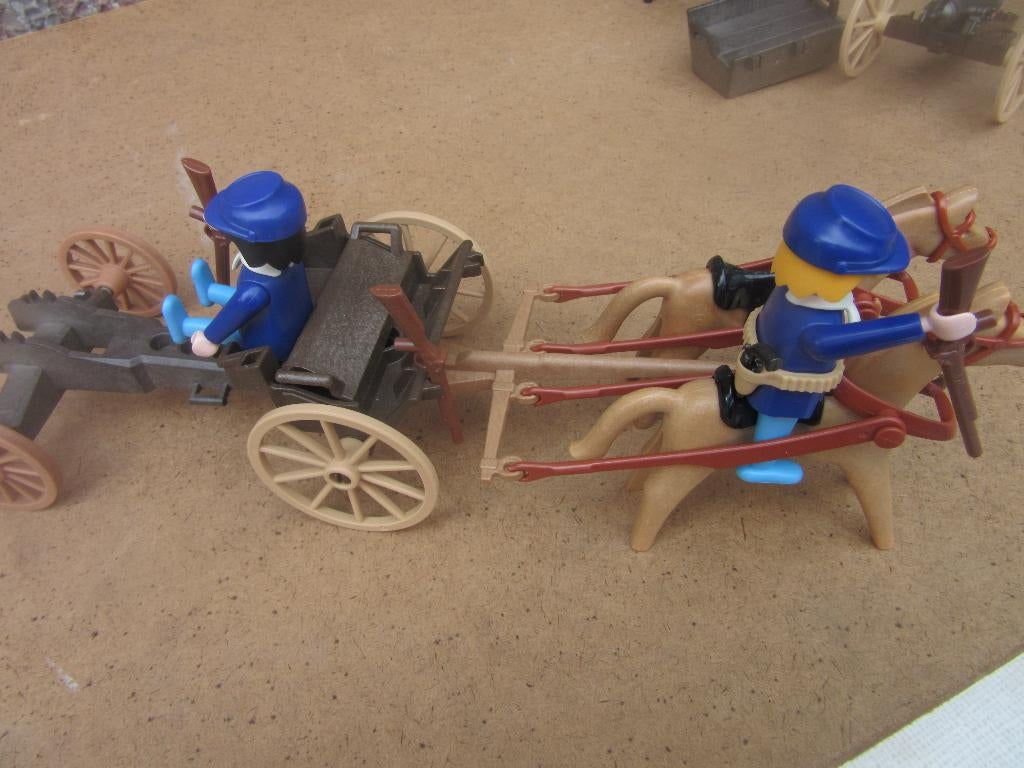13 mei 24Tom LondubasOverijse - Playmobil vintage kanontransport Western soldatenSetje uit de jaren 80 kanontransport, past bij fort bravo van de cavalerie van de unie, western vintageOphalen of Verzenden
