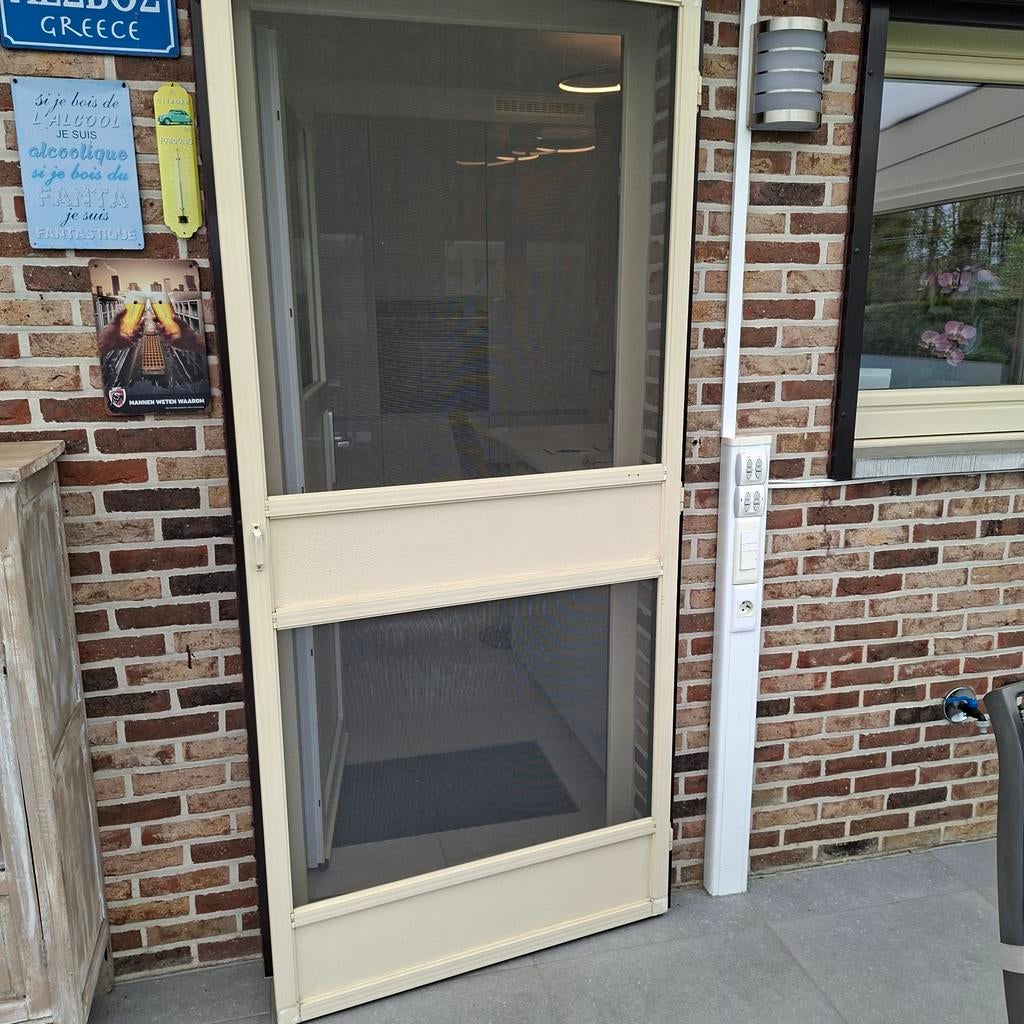 15 feb 24Verduere KarenWetteren - VliegendeurVliegendeur in aluminium met schopplaat afmetingen deur: 964mmx2130mm (bxh) schopplaat 300mm hoogte met pomp leeftijd : minder dan 5jaar. Uitstekende staat. Weg wegens verbouwing. Kleur beige- ral 900Zo goed als nieuw Ophalen