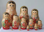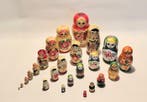 VandaagAnouckaEvergem - Beeldje - Matroesjka poppen set (24) - HoutMatroesjka poppenset, een houten nesteldoos uit rusland met 24 stuks, met vrouwelijke figuren in volkskunst-stijl, uit 1950–1999, in nette vintage staat met kleine ouderdoms- en vlekjes. Vier vintage