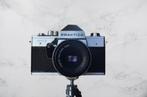 De Praktica MTL 3 is een analoge spiegelreflexcamera die bekend staat om zijn robuuste bouw en gebruiksvriendelijke ontwerp. Hij beschikt over een ontspanknop, een handmatige belichtingsinstelling en een prismavinder. Dit model heeft een 42mm schroefdraad aansluiting voor lenzen, wat het mogelijk maakt om diverse objectieven te gebruiken en creatief te fotograferen.