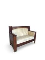 - Canapé - Bois, Textile, Laiton, AcajouCanapé style empire ancien datant d’environ 1880–1900, fabriqué en italie (vénétie) en acajou massif avec embouts en laiton, rehaussé d’un tissu à rayures crème, dimensions 162 cm de largeur, 72 cm de