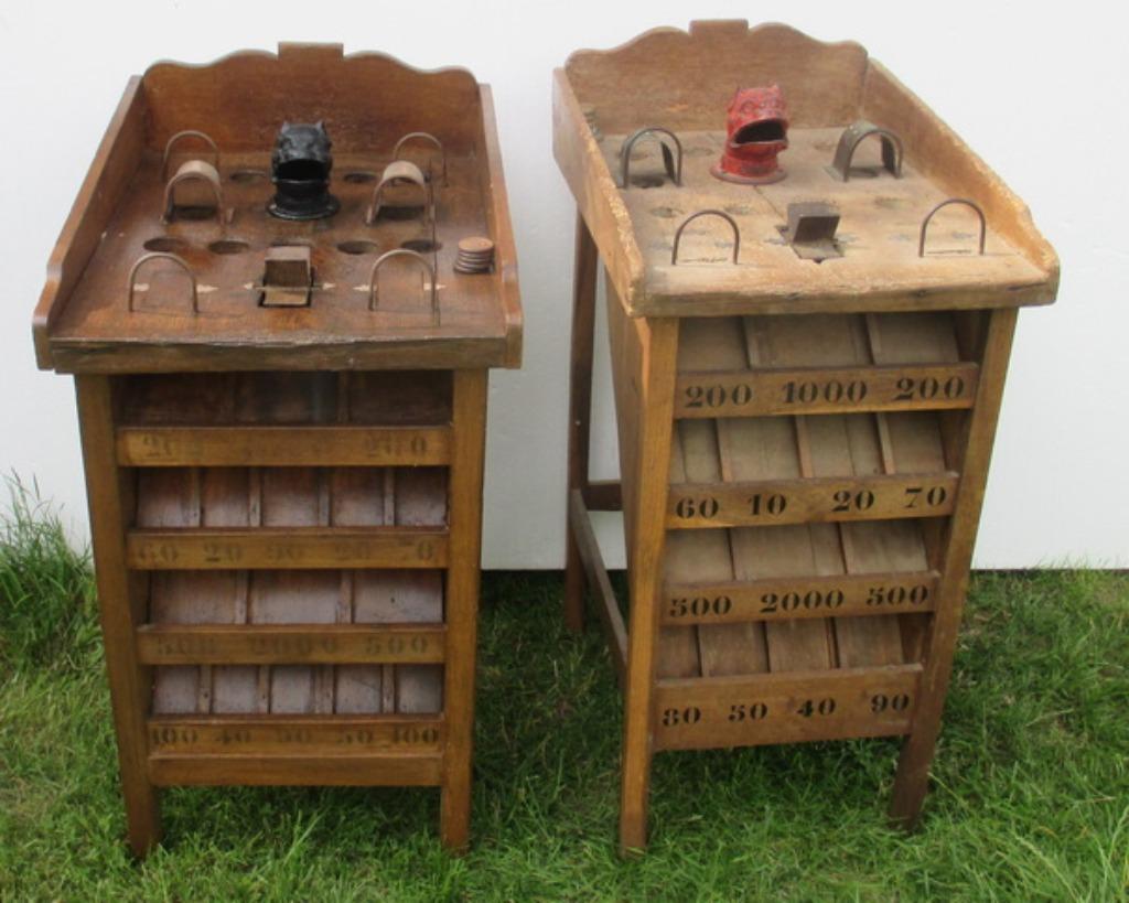 - twee zeldzame jeu de grenouilles pudebakken hondekopTwee uiterst zeldzame jeu de grenouilles, kikkerspelen, of pudebak oud folkloristisch cafespel, jaren 1900,1920 de meest gekende hebben een kikker, maar deze hebben een hondenkop zeldzaam meer fotos eOphalen