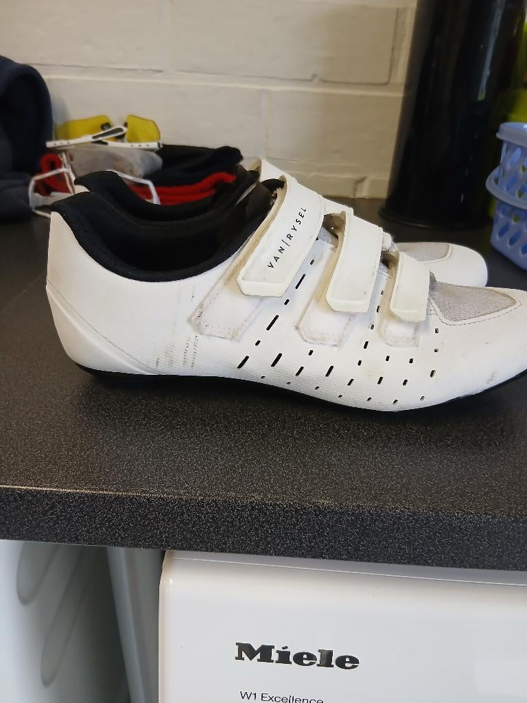 - Race schoenenRace schoen van rysel in gebruikte staat, te gebruiken op racefiets met klikpedalen. Maat 45.enkel ophalen.Gebruikt Ophalen