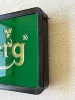 15 apr 26M. JacobsLanaken - Carlsberg - Carlsberg verlicht reclamebord - Lichtbak -Carlsberg verlichte reclamebord, 40 x 20 x 3 cm (b x h x d), gewicht 3 kg, modern ontwerp, gemaakt van kunststof, metaal en glas, uit circa 2020, in goede staat met kleine tekenen van ouderdom en vlek