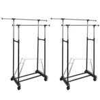 - vidaXL Kledingrekken verstelbaar 2 st met 2 ophangrailsDeze veelzijdige kledingrekken bieden een direct praktische en draagbare opbergoplossing voor het ophangen van kleding. Elk droogrek is gemaakt van hoogwaardig roestvrij staal en is zeer duurzaam. MetNieuw Verzenden