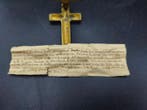 GisterenCatawikiHeel België - Relikwie - Messing, Papier - 1850-1900Ontroerende getuigenis van een reliquiar dat een gebed bevatte dat iemand als goed voorteken droeg.het reliquiarium in de vorm van een kruis dateert uit rond de tweede helft van de achttiende eeuw. He