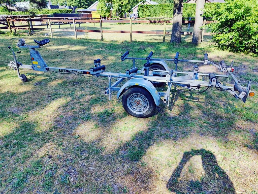 - Boottrailer Riba 2500 kgMooie riba boottrailer 2500 kg dubbelasser nieuwe led verlichting voorzien van rollen, boegvanger, lier met band. Vanachter open (bun uitvoerin) dus geschikt voor elk type boot. Trailer verkeerd in toGebruikt Ophalen