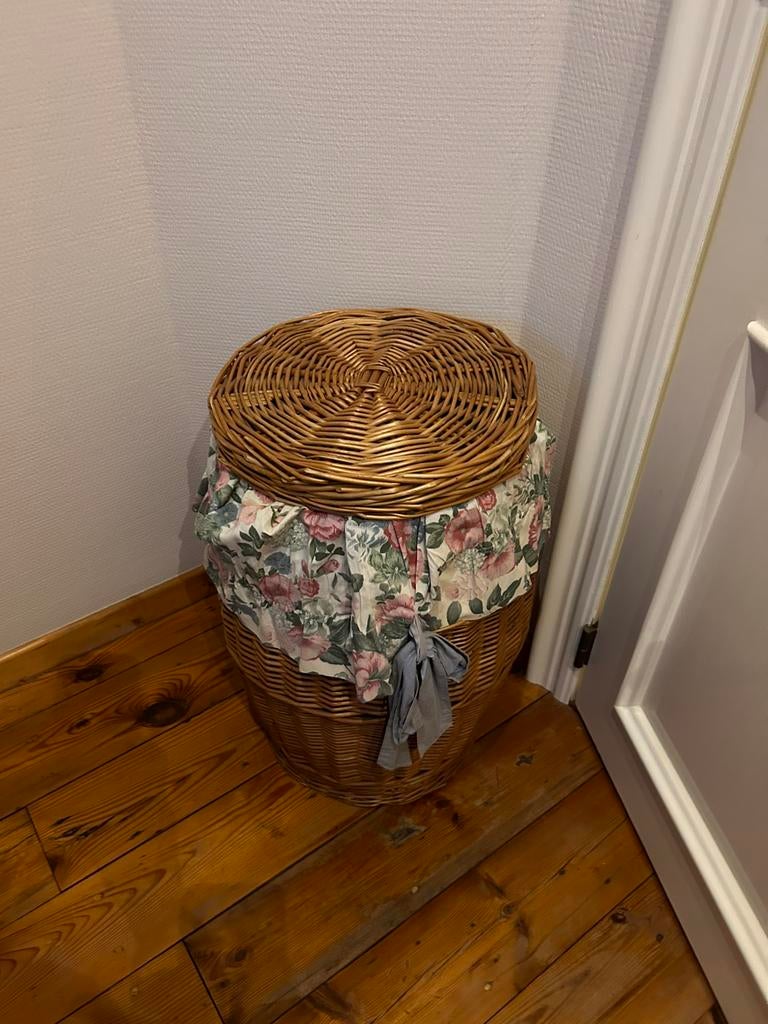 - Rieten wasmand. Vintage.Rieten wasmand in vintagestijl. Met gebloemde stofbekleding. Deze kan je vervangen of eruit halen. Wasmand en stofbekleding in perfecte staat.Zo goed als nieuw Ophalen
