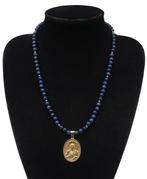 - Lapis lazuli - De Troost van het Heilig Hart - Ketting vanLe réconfort du sacré-cœur - collier du christ - protection, paix et soutien.un médaillon du sacré-cœur représentant le christ offrant son cœur pour instaurer un climat de paix et de réconfort au sein
