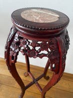 9 apr 26LaureVDergneau - Tafel - Hout, Marmer - Vintage Chinees handgesnedenVintage chinese handgecarveerde houten plantenstand met rond marmeren inzet, diameter 27 cm, diepte 80 cm, hoogte 90 cm, vier cabriole poten, antieke stijl, in goede staat met kleine ouderdomssporen.
