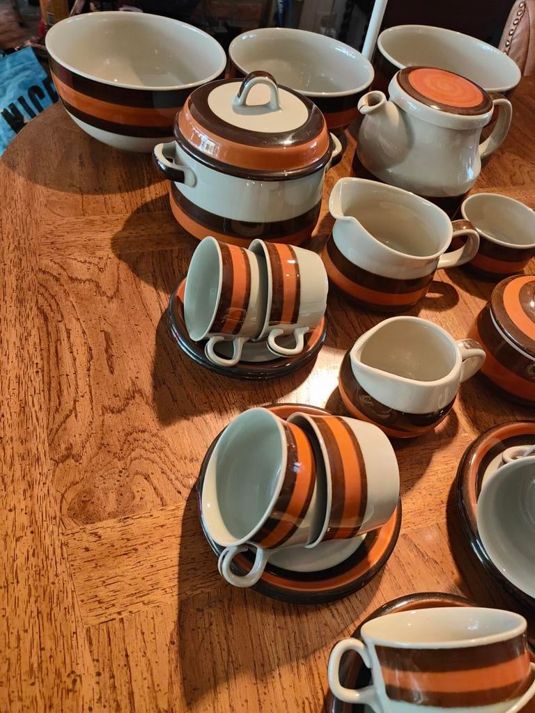 1 mei 25DivinidéeLa Hulpe - Zweeds keramische ANNIKA Rorstrand Marianne Westman 63 deligCompleet servies 63 delige rörstrand zweden annika theepot oranje bruin witte kleuren ontwerp van marianne westman. Materiaal van het product - steengoed fabrikant - rörstrand zweden land - zweden proOphalen of Verzenden