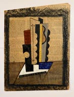 - Attribué à Lajos Kassák (1887-1967) - Composition N.6Composition n.6, Een abstract kunstwerk uit 1910-1920, uitgevoerd in gemengde technieken op krantenpapier, afkomstig uit frankrijk. Titel: attribué à lajos kassák (1887-1967) - composition n.6 Geschat