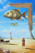 2 mrt 26CatawikiHeel België - Poster/schilderij met klok gesigneerd E. Weiss 94Poster (of schilderij?) Met geïntegreerde klok, gesigneerd e. Weiss 94. • Ingelijst kunstwerk met een surrealistisch tafereel geïnspireerd op salvador dali, met een zakhorloge boven een kustlandschap.Ophalen of Verzenden