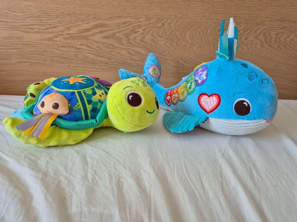 - Vtech zeeschildpad en walvisBatterijen werken, gespeeld in een rookvrije en huisdiervrije omgeving. Geluid kan aan/uit gezet worden. Tijd voor knuffel- en speelplezier met de zeevriendjes schildpad! Deze zachte schildpad is gemaZo goed als nieuw Ophalen